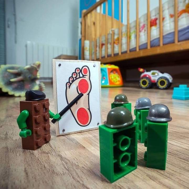 Lego army targeting human foot